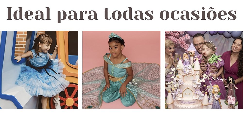 Forrado em tecido 100% algodão, todas as costuras são embutidas para garantir o conforto de nossas princesas, prezamos por um ótimo acabamento e qualidade em todos materiais utilizados.