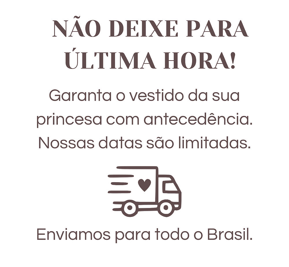 Os acessórios não mencionados na descrição do produto como tiaras, sapatos, óculos, etc, não acompanham o vestido, podendo ser adquiridos de forma individual conforme disponibilidade.